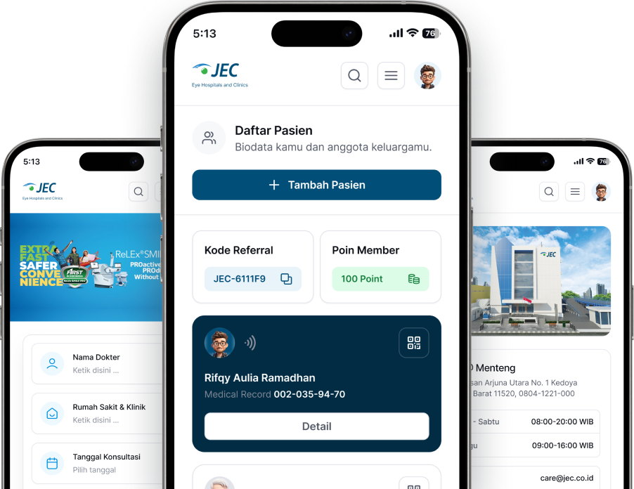 Dapatkan konsultasi langsung dengan dokter spesialis mata JEC melalui video call. Praktis, aman, dan hemat waktu tanpa perlu datang ke rumah sakit.